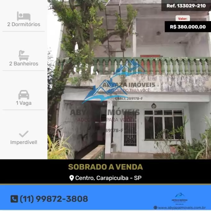 Imóvel exclusivamente para venda, tanto comercial ou residencial, localizado especificamente no Centro de Carapicuíba, com acesso rápido a bancos, mercados, escolas, transporte público e serviços essenciais.