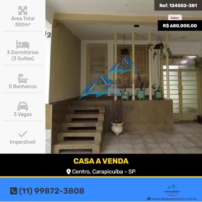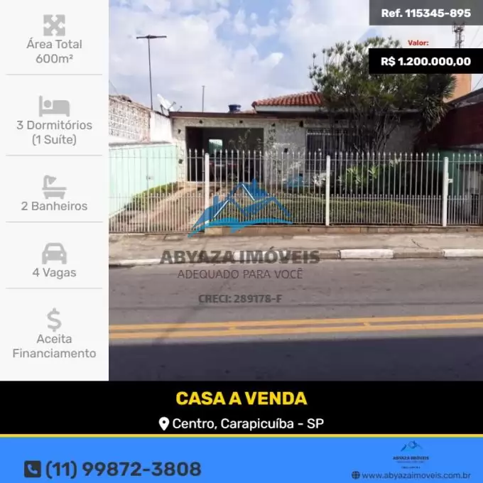 Localizada no Centro de Carapicuíba, esta casa comercial e residencial apresenta alto potencial de valorização e flexibilidade de uso.